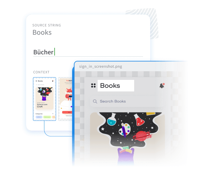 通过为译者提供语境来帮助译者选出最合适的译文。加快产品多语言化速度,并尽可能快地发布新版本。